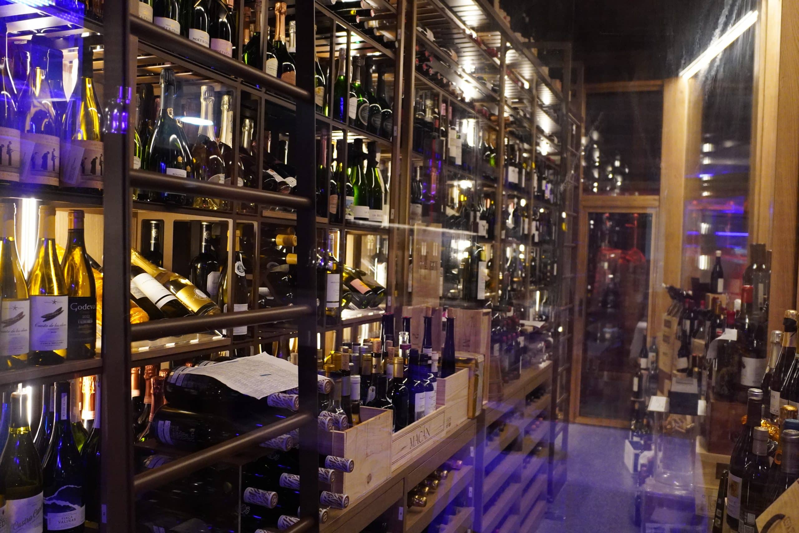 Junto a la parrilla abierta y la cava acristalada, con ambiente vibrante y gastronómico.